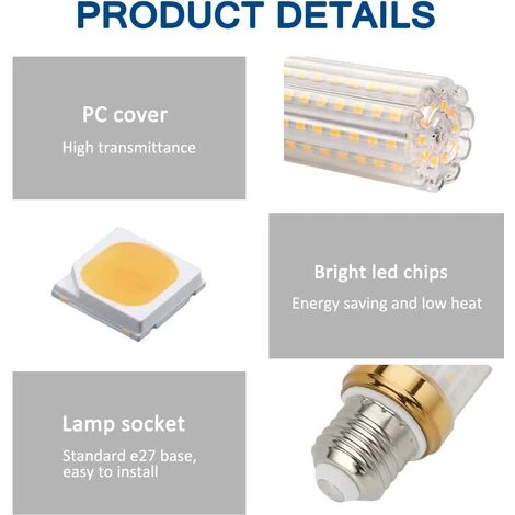 【Qualité Durable】: Culot E27, taille Ø35*113mm, facile à installer. L’ampoule E27 est équipée d’un masque PC. Éclairage instantané. Le matériau en aluminium aide l’ampoule à dissiper rapidement la chaleur. La durée de vie moyenne est de 30,000 heures.