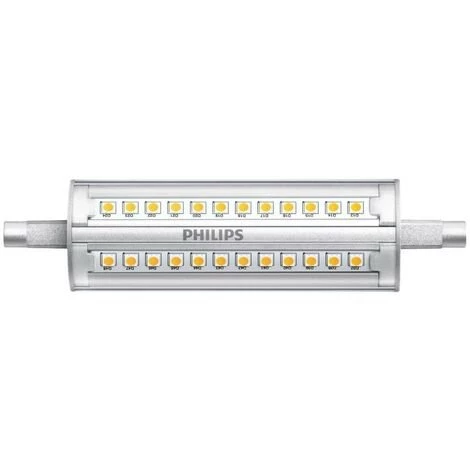 Ampoule LED R7S régulable, conçue pour remplacer efficacement vos anciens linéaires halogènes à double culot. Luminaire LED faible consommation, d’une intensité de 1600/1800 lumens pour 14W – soit un rendement de 114,29 lm/W. Disponible en deux températures de couleur : blanc chaud 3000ºK, 1600 lm (réf. 57879700) ou blanc neutre 4000ºK, 1800 lm (réf. 57881000). Cette ampoule LED 14W équivaut à un crayon halogène de 100W. Fiables, durables et économes en énergie, les ampoules régulables de la gamme CorePro LED linear de Philips se prêtent à de multiples applications domestiques et commerciales.