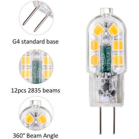 | Remplacement parfait des ampoules halogènes 30W par notre ampoule LED g4 non dimmable de 3 watts, économisant plus de 85% sur la facture d’électricité. Installation écologique et facile, résistant aux chocs et aux vibrations, avec une longue durée de service atteignant 30 000 heures. Caractéristiques: Caractéristiques: Remarques: Liste des colis : |