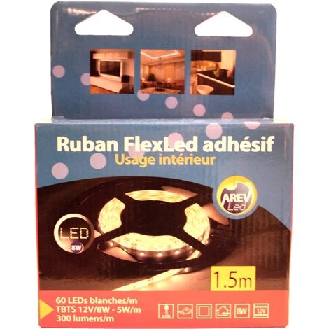 Livraison offerte à partir de 90 euros d’achats chez ce marchand. Ruban lumineux adhésive FlexLed de la marque Arev. Longueur 1,5 mètres. Totalement waterproof le circuit est coulé dans une résine transparente. Utilisation intérieur/extérieur. Alimentation par transformateur électronique AC 230V/ DC 12V fourni. Les bandes lumineuses sont sécables toutes les 3 leds. Emet peu de chaleur et peut être utilisé dans des espaces restreints (pour l’éclairage d’une armoire, derrière un poste de TV fixé au mur, etc.). Possibilité de couper tous les 5 cm (non interconnectable). Muni d’un autocollant double face ultra-collant pour surfaces lisses à peu rugueuses. Norme IP20. Flux : 450 Lumens.