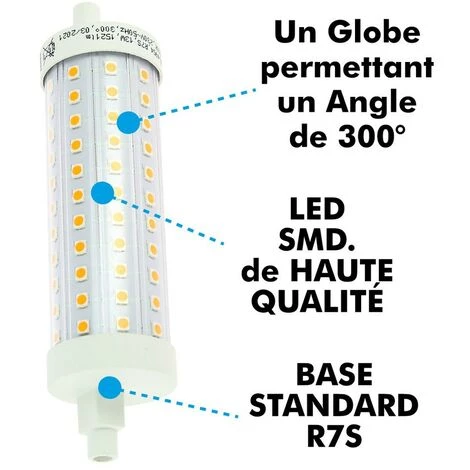 Ampoule LED R7S Slim 13W 118mm 1520 Lm, cette ampoule led r7s compacte se montera dans tous les projecteurs extérieur r7s.