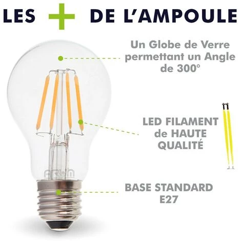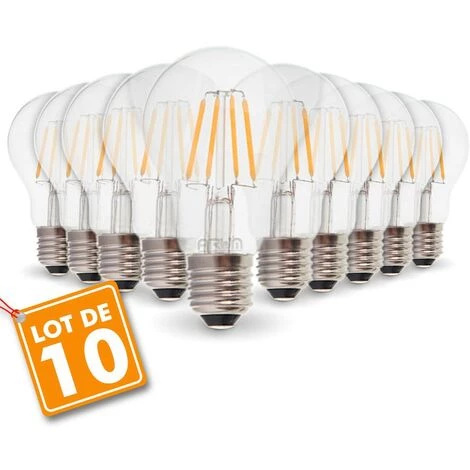 Lot de 10 Ampoules LED E27 A60 technologie filament LED de teinte blanc chaud 2700°K