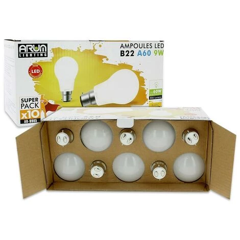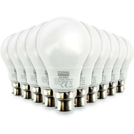 Lot de 10 Ampoules LED B22 Baïonnette de 9W