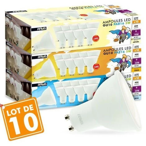 Lot de 10 ampoules LED GU10 5W 400 Lumens