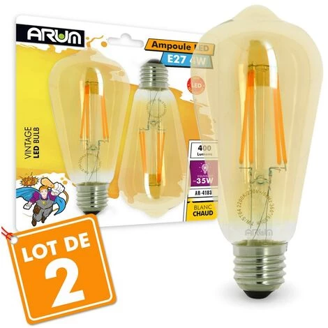 Lot de 2 Ampoules LED E27 4W Filament LED verre ambrée, lumière chaude 2200°K
