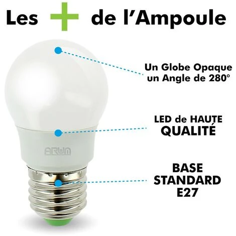Lot de 5 Ampoules LED boule (ou balle de golf) E27 G45