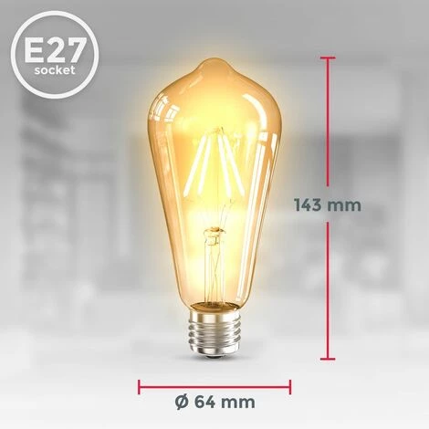 - Technique : L’ampoule rétro ST64 éclaire d’une couleur de lumière très chaude et confortable à 2.700 kelvins. Le culot standard E27 peut être utilisé dans la plupart des luminaires. Avec 4 watts et 380 lumens, cette ampoule design consomme peu d’énergie tout en offrant un éclairage doux.