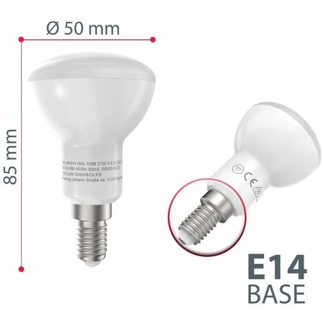 B.K.Licht ampoule LED • E14 • 6 Watt • durée de vie 20.000 heures environ • blanc chaud 2700 Kelvin • 450 Lumen • 230V • indice de protection IP20