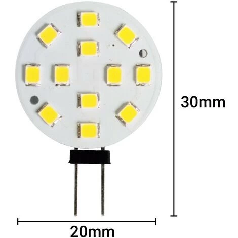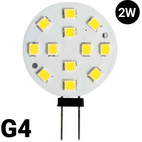 Ampoule LED Bi-Pin plate G4 2W 12V. Remplace les anciennes lampes halogènes 20W G4 bi-pin. Avec un angle d’ouverture du faisceau de 180 degrés. Un total de 12 LED SMD2835 à haute luminosité et haute efficacité. Indice de rendu des couleurs supérieur à 80.