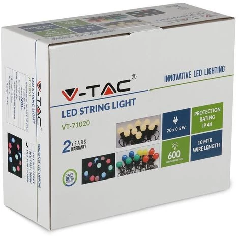 Les lampes LED étant versées dans la douille, les lampes sont bien scellées de façon étanche : l’éclairage a une valeur PI de 44. Cela rend la lampe adaptée à un usage extérieur. En outre, les 20 lampes LED consomment ensemble 10W, si bien que la lampe constitue un choix économe en énergie.
