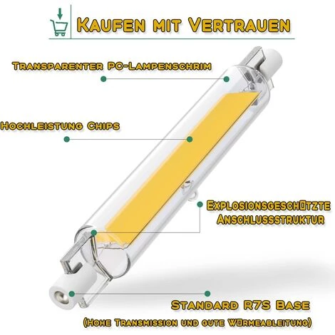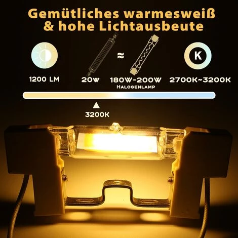 DKSFJKL R7S LED 118mm Dimmable 1200LM, 20W Ampoule R7S LED Blanc Chaud 3200K, Remplacement J7S Halogène 180W-200W Lampe, R7S LED COB Haute Lumière Linéaire, éclairage à Faisceau 360 °, AC 220-240V, 2 Pcs