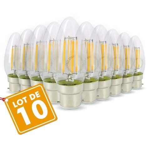 Lot de 10 Ampoules LED technologie filament LED de teinte blanc chaud 2700°K