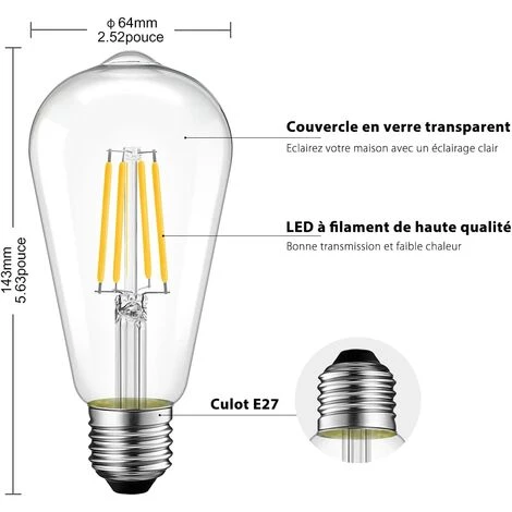 ![GRID COOL 8W Ampoule LED Filament E27 ST64, Equivalent à Ampoule Incandescente 60W, Ampoule Rétro Edison, 806LM 2700K Blanc Chaud, Non-dimmable, Lot De 6, LVWIT [Classe énergétique E] 7 GRID COOL 8W Ampoule LED Filament E27 ST64, Equivalent à Ampoule Incandescente 60W, Ampoule Rétro Edison, 806LM 2700K Blanc Chaud, Non-dimmable, Lot De 6, LVWIT [Classe énergétique E] – Image 5](https://www.ampoulealed.com/wp-content/uploads/2022/09/58349475_5.webp)