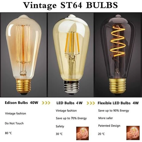 Verre de couleur ambre vintage, ampoule décorative à filament LED ST64 4W.