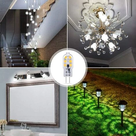 【G4 12V 2W】: G4 LED AC/DC 12V. Si vous souhaitez l’utiliser dans un éclairage domestique standard 110-240V, assurez-vous que le transformateur est compatible avec l’ampoule LED. L’utilisation d’un transformateur halogène provoquera facilement un scintillement.