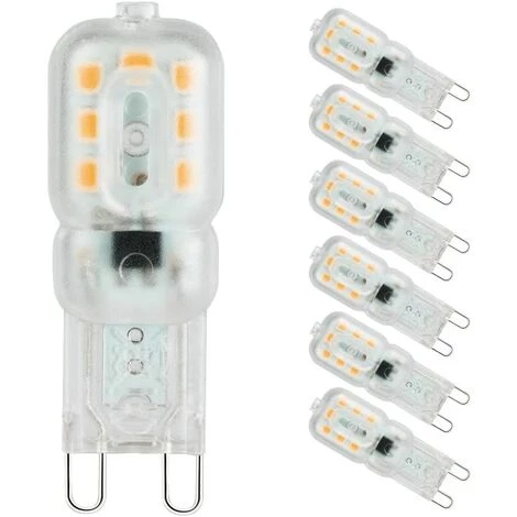 Paquet de 6 ampoules à DEL G9, ampoule G9 3W (équivalente à celle des ampoules halogènes 33W), 300lm, blanc chaud 3000K, 220-240V, non graduable, ampoule de maïs