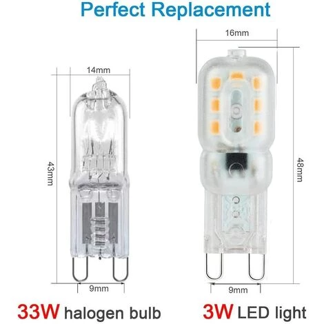 ÉCONOMIE: Économisez jusqu’à 90% sur votre facture d’électricité, durée de vie de 30000 heures (sur 10 ans, 8 heures par jour), réduisez la fréquence de remplacement de l’ampoule G9 FACILE À INSTALLER: Peut être facilement installé pour remplacer les ampoules halogènes ordinaires G9. instantané sans délai.