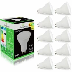 Lot de 10 Ampoules LED GU10 7W « SMART DIMMABLE » dimmable sans variateur à 3 niveaux sans variateur.