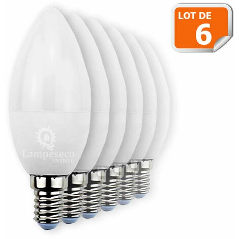 Lot de 6Â Ampoules bougie E14 6W 480 lumens