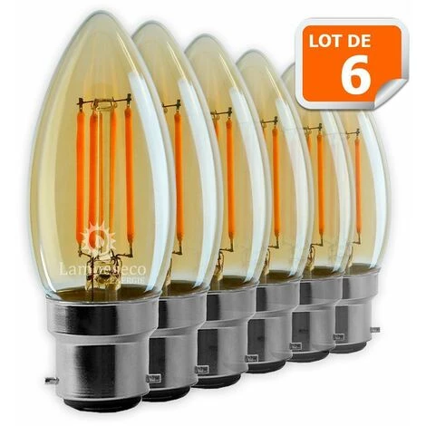 Lot de 6 Ampoules Led Flamme Filament Doré 4 watt (éq. 42 Watt) Culot B22