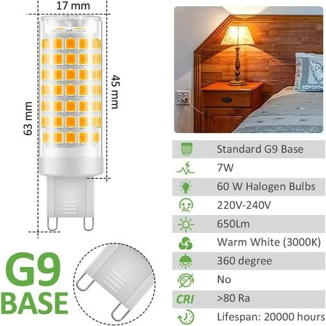Remplacement parfait de l’halogène 60 W: avec la base standard G9 ordinaire, ces ampoules peuvent être facilement installées sur vos luminaires existants avec des supports G9.