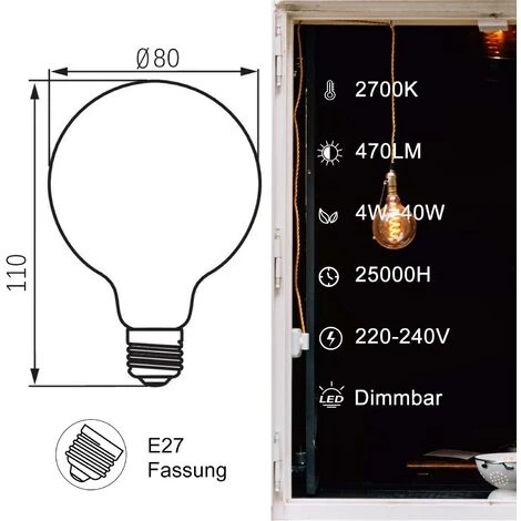 【Basse consommation d’énergie Ampoule vintage E27】Cette ampoule vintage Edison est équivalente à une ampoule à incandescence de 40W, que vous pouvez économiser jusqu’à 90% de l’énergie et obtenir la même luminosité. Durée de vie moyenne : environ 25 000 heures.