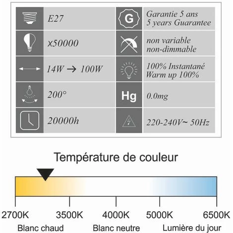 - Des ampoules de haute qualité : CE et RoHS approuvés avec 5 ans de garantie.