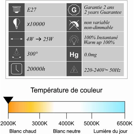 - Des ampoules de haute qualité : CE et RoHS approuvés avec 2 ans de garantie.