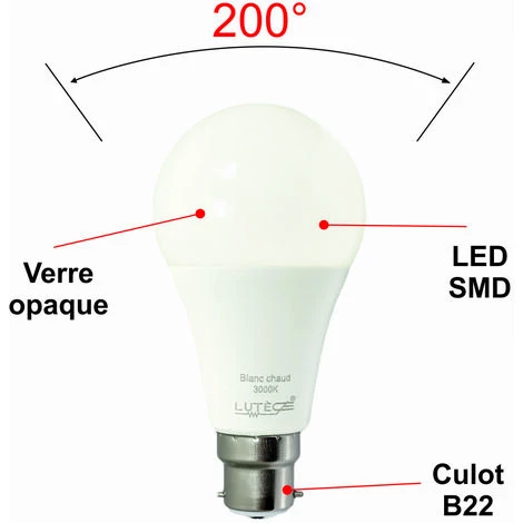- Il s’agit d’ampoules LED non réglables, non compatibles avec les variateurs de lumière.