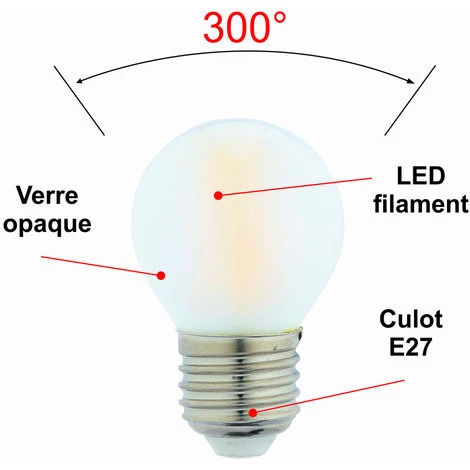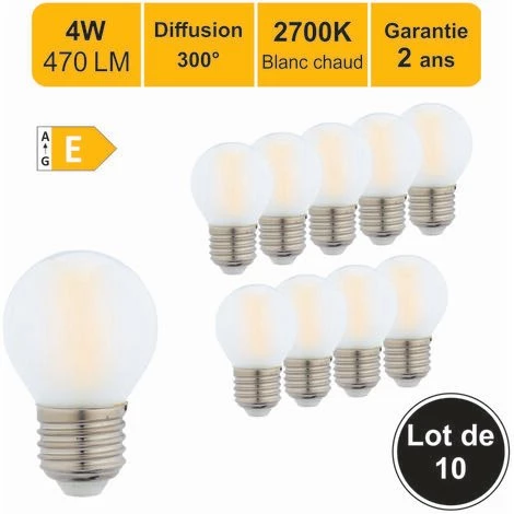Lot de 10 ampoule LED filament sphérique E27 4W (equiv. 40W) 470Lm 2700K