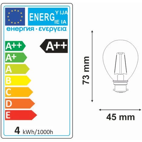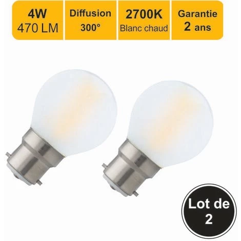 Lot de 2 ampoule LED filament sphérique B22 4W (equiv. 40W) 470Lm 2700K