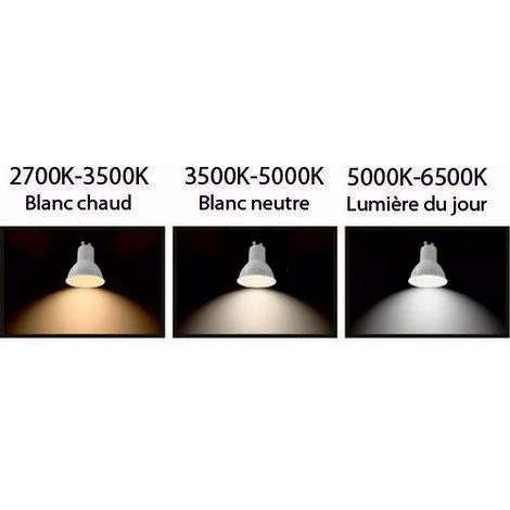 - Avec une température de couleur de 6 400 Kelvin, l’ampoule fournit une lumière blanc froid ou lumière du jour, vous offrant une excellente représentation des couleurs. Elle est à privilégier pour mettre en avant des styles modernes, mettre en valeur des objets (œuvres d’art, photographies, peintures,…), éclairer des lieux de passage (escaliers, couloirs, garage), représenter fidèlement les couleurs avec un éclairage vif (applications industrielles, ateliers de peinture, locaux professionnels,…).