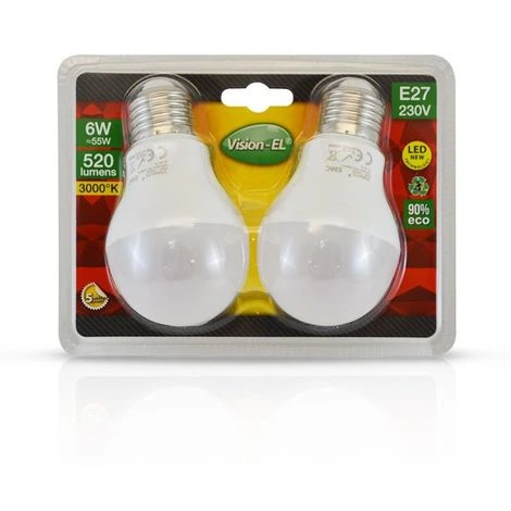 Lot de 2 ampoules Led 6 watt (équivalent à 55 watt incandescent)