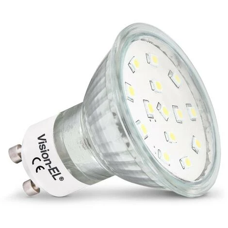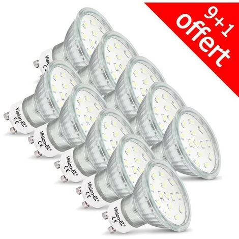 Pack de 10 ampoules LED GU10 Spot Vision-EL – 4W SMD DichroĂŻque – 230V – 360 lumens – Puissance de 4W équivalente Ă 35W halogène – Blanc Neutre.