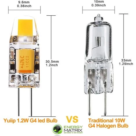 BON REMPLACEMENT D’AMPOULE HALOGÈNE 10W G4 – Seule une ampoule 12V G4 LED de 1.2W remplace parfaitement l’ampoule halogène 10W G4 directement, ne consommant que 10% d’énergie, économisant plus de 90% de votre facture d’énergie et plus sûre que les ampoules halogènes