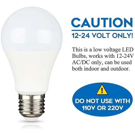 Application : Cette ampoule LED E27 12V convient aux panneaux solaires, panneaux photovoltaïques, et peut être alimentée par des batteries 12V/24V. Idéal pour l’éclairage de caravane/camping-car, cabine de bateau, balise (portail), garage, abri de campagne, etc.