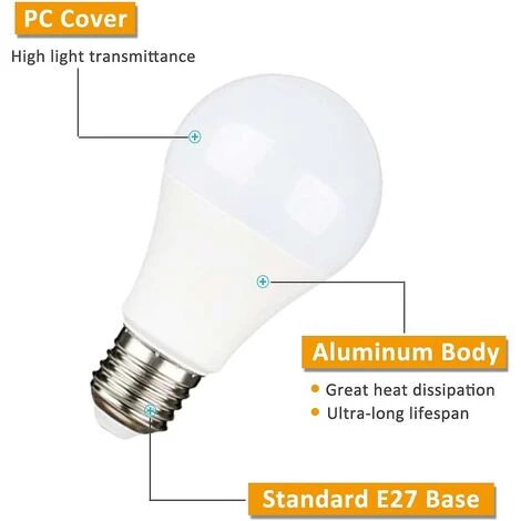 LED E27 24 V : culot E27, taille 60 x 115 mm, facile à installer. Le matériau en aluminium aide l’ampoule à dissiper rapidement la chaleur. Eclairage instantané. La durée de vie moyenne est de 30 000 heures. Ampoules LED E27 24V pour garage.