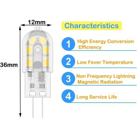 Les ampoules LED G4 ne consomment que 2W de puissance, ont une puissance de 200 lm, peuvent remplacer directement les lampes halogènes de 20 W et économiser jusqu’à 90% sur les coûts d’électricité, parfait pour l’éclairage domestique.