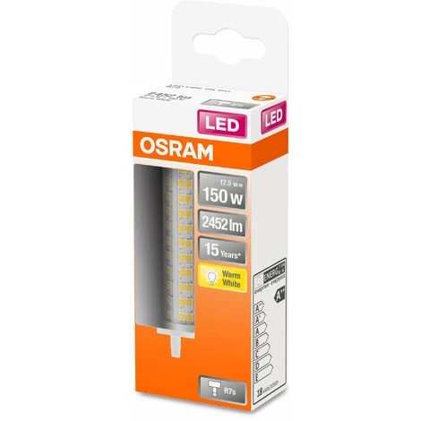 Lampes LED avec culot R7s. Caractéristiques produit: Alternative LED aux lampes conventionnelles R7. Bonne qualité de la lumière ; indice de rendu des couleurs Ra: ≥ 80; chromaticité constante. Avantages produits: S’adapte à la plupart des luminaires culot R7s. Bonne émission lumineuse. Puissance thermique plus faible (par rapport au produit de référence standard). Durée de vie allant jusqu’à 15 000 heures. Garantie de trois ans. Domaines d’application: Eclairage général à température ambiante de -20…+40°C. Utilisation en extérieur, uniquement dans des luminaires appropriés.