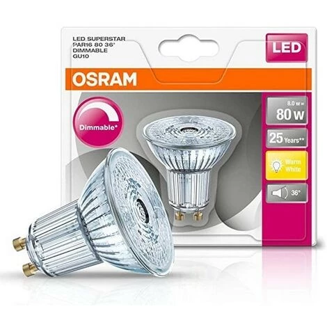 Référence : LPPAR16D8036 8W/827 EAN: 4058075095489 (Blanc chaud 2700K).