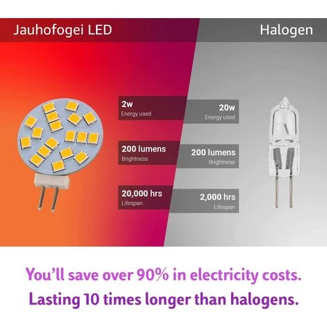 La lumière LED G4 délivre 200 lumens de rendement lumineux, équivalent à une ampoule halogène de 20 watts, tout en ne consommant que 2 watts.