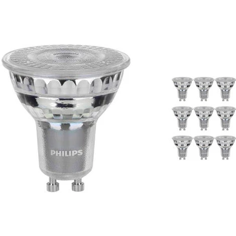 Lampesdirect ® est le grossiste de Ampoules LED Spots | Chez Lampesdirect, le « Lot 10x Philips MASTER Value LEDspot GU10 PAR16 6.2W 575lm 36D – 940 Blanc Froid | Meilleur rendu des couleurs – Dimmable – Équivalent 80W(EAN: 8719157022118) » est particulièrement bon marché et peut être livré directement du stock ! Ce produit Philips a une puissance de 6.2 watts ( le watt correspond à la puissance de la lampe et indique la quantité d’énergie qu’elle consomme ). Cette ampoule a une douille GU10.Toutes les sources de lumière ont une douille par laquelle la lampe (source de lumière) reçoit le courant nécessaire pour produire de la lumière. La douille permet également de remplacer plus facilement la lampe si elle se casse. Cette ampoule a une forme de « Spot ». Le produit a le code couleur suivant : 940, en Kelvin c’est k. Le type de ce produit est :GU10 LED. Le produit porte le label de qualité « MASTER » et la série de produits « LEDspot ». Cette Ampoule a 575 lumens avec un rapport lumen/watt de 93. Le lumen est la mesure de la quantité de lumière produite par l’ampoule ( les gens avaient l’habitude de regarder la puissance en watts, mais cela ne signifie plus grand-chose aujourd’hui pour choisir une Ampoule). Ces « LED SPOT » ont une tension de 220-240v. Le volt est l’unité de mesure de la tension électrique dans un circuit entre un point A et un point B. Ce produit Philips possède un label d’efficacité énergétique : « F ».La variation des ampoules LED vous permet de mieux contrôler l’atmosphère adéquate dans votre zone d’application. Cette ampoule est-elle variable ? La réponse est : Oui. Cette Ampoule a une valeur de rendu de couleur (RA) de 90-99 – Excellent rendu des couleurs. L’angle du faisceau de cette lampe est de 36°. Un degré de faisceau est également appelé angle de faisceau et indique l’angle du faisceau lumineux provenant d’une source lumineuse. Ce faisceau crée une surface sur laquelle la lumière d’une source lumineuse brille réellement. Ce produit fait partie du