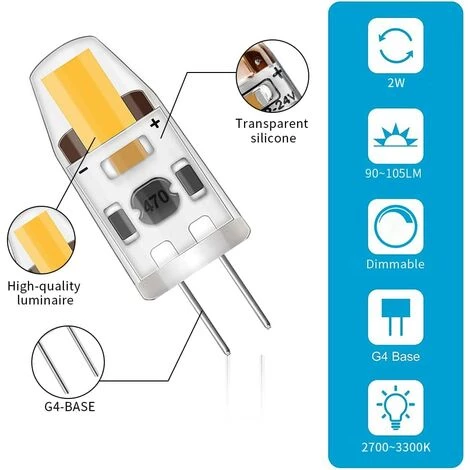 ![TINOR LED G4 Dimmable Ampoules,2W Equivalent 20W Halogène Lampe,200LM Blanc Chaud Économies D’énergie Ampoule,Pas De Scintillement,AC/DC 12-24V,G4 Bi-pin ,360°Angle De Faisceaux,Lot De 10 [Classe énergétique A+++] 7 TINOR LED G4 Dimmable Ampoules,2W Equivalent 20W Halogène Lampe,200LM Blanc Chaud Économies D’énergie Ampoule,Pas De Scintillement,AC/DC 12-24V,G4 Bi-pin ,360°Angle De Faisceaux,Lot De 10 [Classe énergétique A+++] – Image 5](https://www.ampoulealed.com/wp-content/uploads/2022/09/64568468_5.webp)