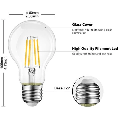 Taille de l’ampoule : 104 mm (hauteur) x 60 mm (diamètre)