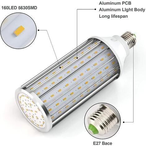 Ampoule LED super brillante: 108LED 5630SMD, 3450lm 6500K Blanc Froid LED Ampoule de maïs équivalant à une ampoule à incandescence de 60W.