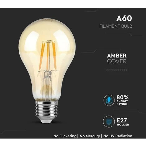 Ampoule led E27 filament ambrée blanc chaud 2200°K