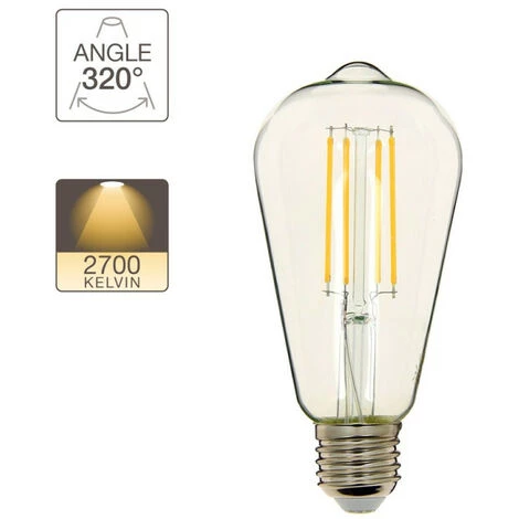 - Cette ampoule LED EDISON d’un angle d’éclairage de 320° s’installe sur des luminaires dotés d’un culot E27.