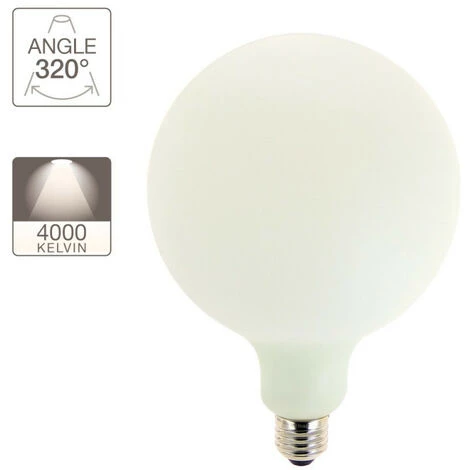 Ampoule LED déco éclairante Globe Opaline au verre lacté, culot E27, 12W cons. (100W eq.), 1521 lumens, lumière blanc neutre