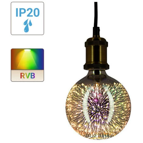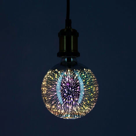 - Ampoule LED déco 3D (G125), surface imprimée avec un aspect Fireworks, au culot à vis E27 permettant une installation simple et rapide