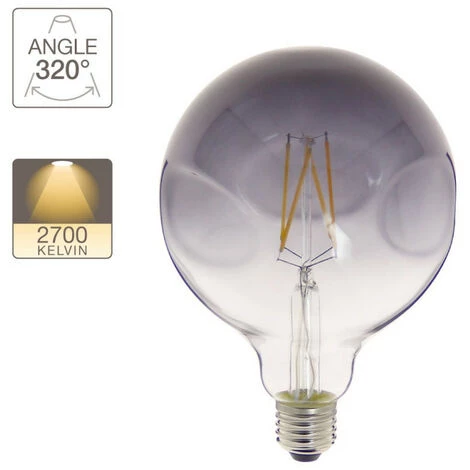 - Ampoule LED Globe (G125) Irrégulière au verre fumé, culot à vis E27 permettant une installation simple et rapide
